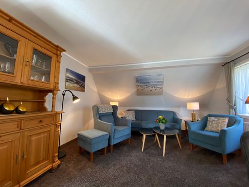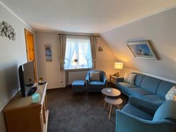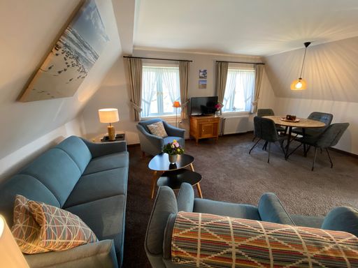 Die ca. 60m² große Ferienwohnung bietet Platz für 2-4 Personen und vereint moderne Ausstattung mit warmem Sylter Wohngefühl. Hier finden sie zwei separate Schlafzimmer, ein helles Wohnzimmer mit bequemer Sitzecke und TV sowie eine moderne Küche, die zum gemeinsamen Kochen einlädt.