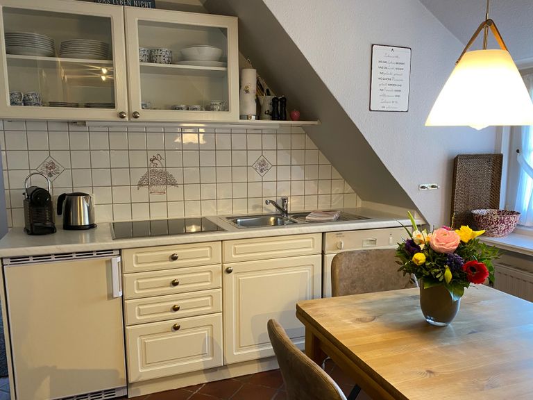 Wie Ferienwohnung 1 bietet auch diese ca. 60 m² große Ferienwohnung viel Platz und eine moderne Ausstattung. Warme Farben, gemütliche Möbel und eine hochwertige Küche schaffen ein entspanntes Urlaubsambiente.